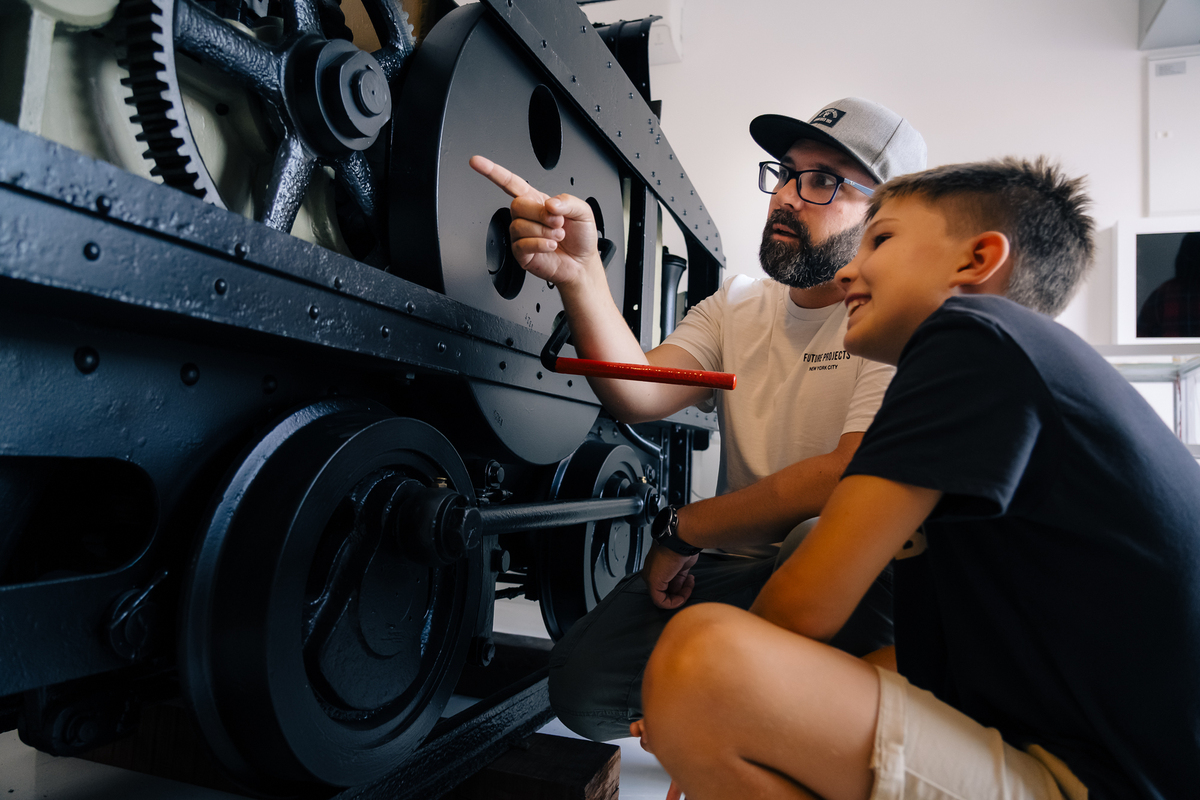 Interaktive Elemente umfassen Touchscreen-Displays, KRAS-Quiz für Teams, das Spiel "Finde, baue, male!", eine Mülltrennungsstation, Dokumentarvideos und Objektrepliken.