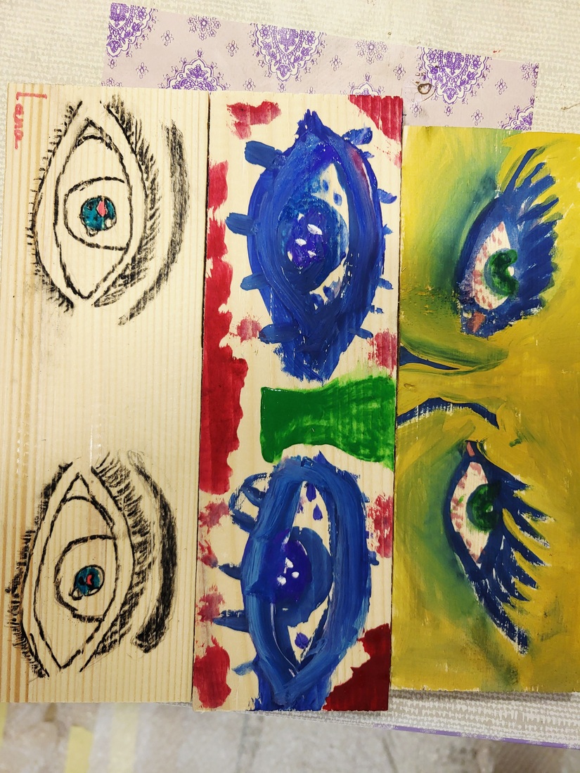 Na delavnici "Vsake oči imajo svojega malarja" so se otroci izurili v risanju in slikanju oči. Delavnica je bila pripravljena v povezavi z novo začasno razstavo Zločin in sadež, ki tematizira fenomen grafita. Slednjega dojemajo nekateri kot vandalizem, drugi kot sodobno umetnost, enim je všeč, nekaterim pač ne - vsi vidimo svet skozi svoje oči. Pod vodstvom lokalne umetnice Rebeke Petrovčič smo se najprej preizkusili v kratki vaji skiciranja oči, Rebeka nam je nato predstavila osnovne korake izrisa, nato pa smo šli v akcijo. Nastali so čudoviti izdelki v več tehnikah, nekatere od njih pa bodo obiskovalci lahko občudvali tudi na muzejski recepciji.