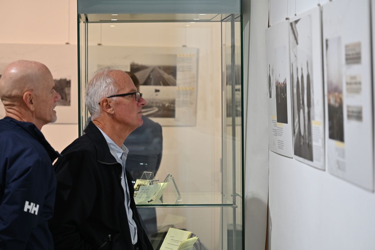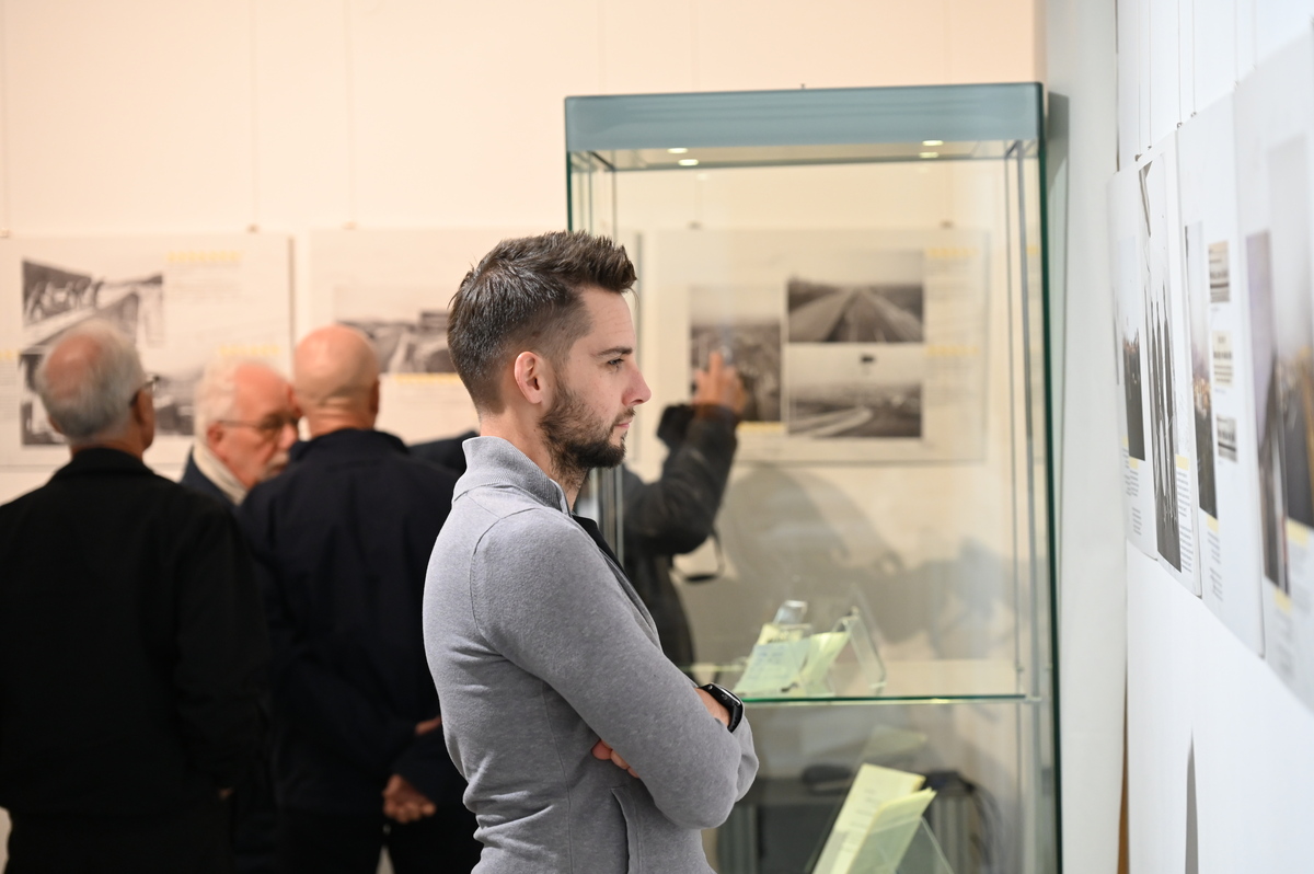 Na ogled je več kot 40 fotografij iz bogate zakladnice Fototeke Muzeja novejše in sodobne zgodovine Slovenije, katerih avtorji so med drugim Marjan Ciglič, Nace Bizilj, Edi Šelhaus, Jože Žnidaršič, Ivan Kramžar, Vladimir Čuk, Svetozar Busić, Rudi Paškulin in Leon Jere, dopolnjuje pa jih nekaj posnetkov iz arhiva Družbe za avtoceste Republike Slovenije. Fotografsko gradivo dopolnjujejo predmeti iz časa gradnje – uniforme prvih cestninskih delavcev, kovček in torbica za prenašanje denarja – ter pričevanja udeležencev.